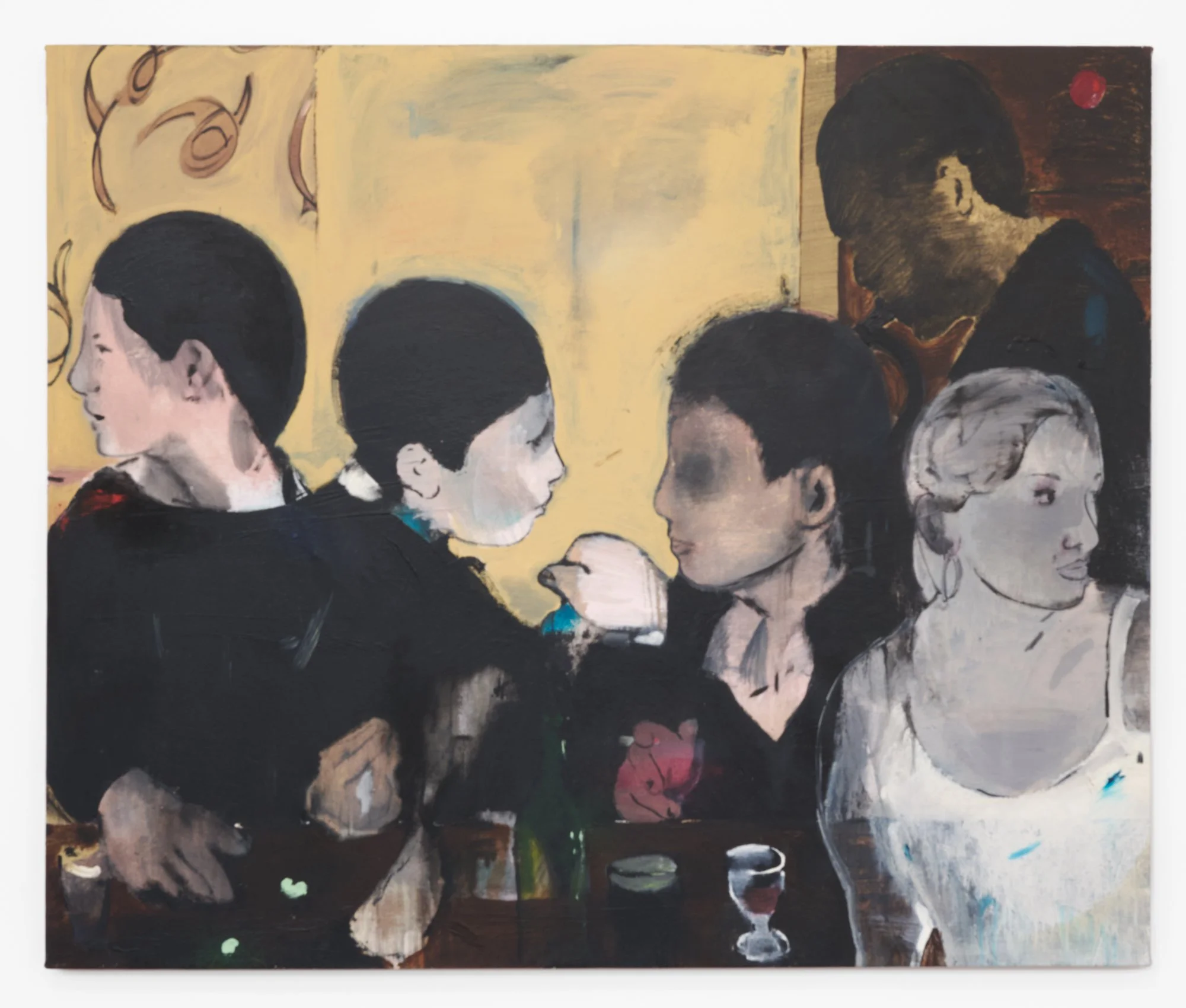 “I wanted the paintings to feel set in a familiar space, somewhere between work and home,” says the Irish artist. “The scenes have a slightly surreal quality, with figures that appear introspective, like strangers sharing the same environment. It’s the kind of setting that anyone might recognise themselves in at one time or another.”